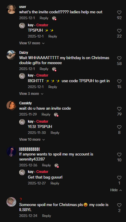 And then something interesting happened. The comment sections started filling up with regular users dropping their invite codes. Not the creators. Just random people who'd signed up and wanted to get their friends on the app.